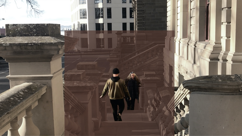 This solo exhibition at the Top Gallery, Salamanca Arts Centre, Hobart (16 July-29 August 2021) developed two earlier bodies of work into an immersive journey through Hobart in video, still images and sound, during which concealed emotions and memories surface in the city’s streets and architecture. The exhibition was the feature art review of the week in the Mercury newspaper. Read Andrew Harper’s review (PDF). Take a short tour of the exhibition (opens in Vimeo).