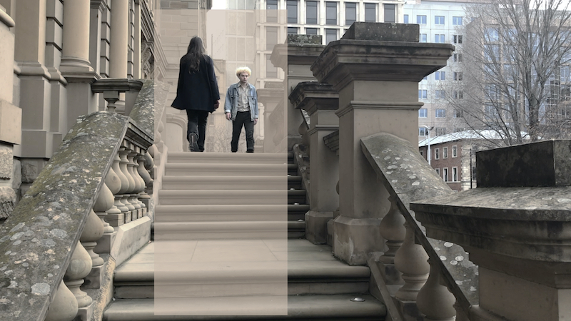 The strangers we pass might change our lives. They could become our dream lover, our best friend or our killer. But the moment passes and the frisson dissipates as we keep on walking. Here, the passing encounters take place on the steps of Hobart’s Treasury building. These photo-collages formed Gabrielle Rish’s fine arts Honours thesis.